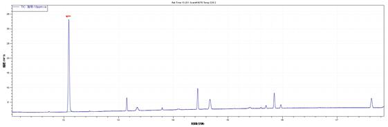測(cè)定方式:TIC(FULL SCAN)定性(掃描范圍:40-200amu),SIM模式定量。