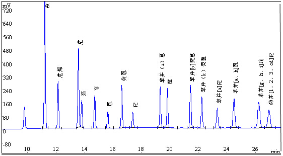 圖1.16種多環(huán)芳烴標(biāo)準溶液色譜圖